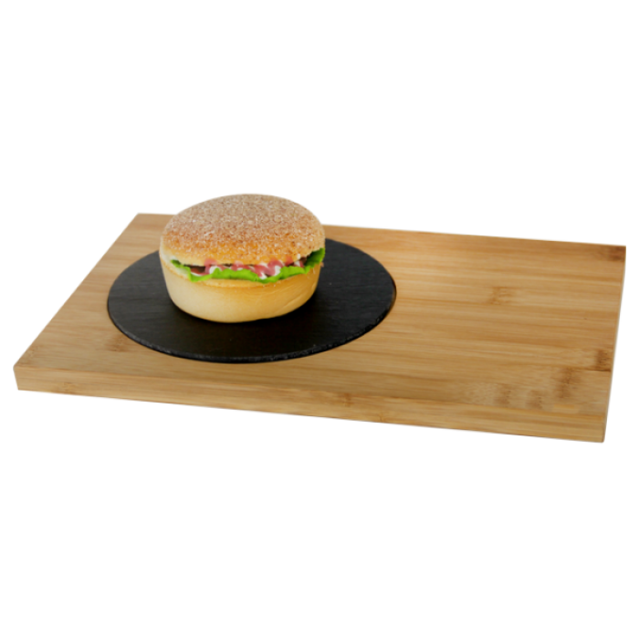 Set Platou servire bambus RAKI 30x25x1,5cm cu placa ardezie 16cm rotunda
