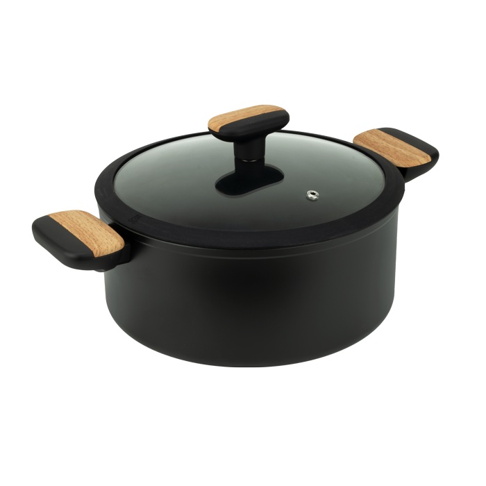 Oala cu manere lemn si capac termorezistent Black Wood 26xh12cm,inductie