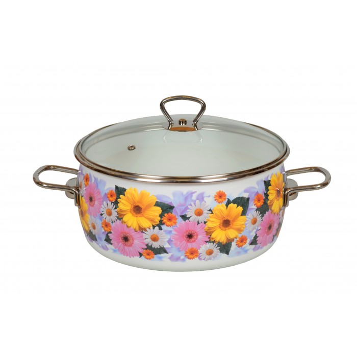 Oala emailata ruseasca 5l, D24cm, RAKI FERNANDA, cu capac sticla