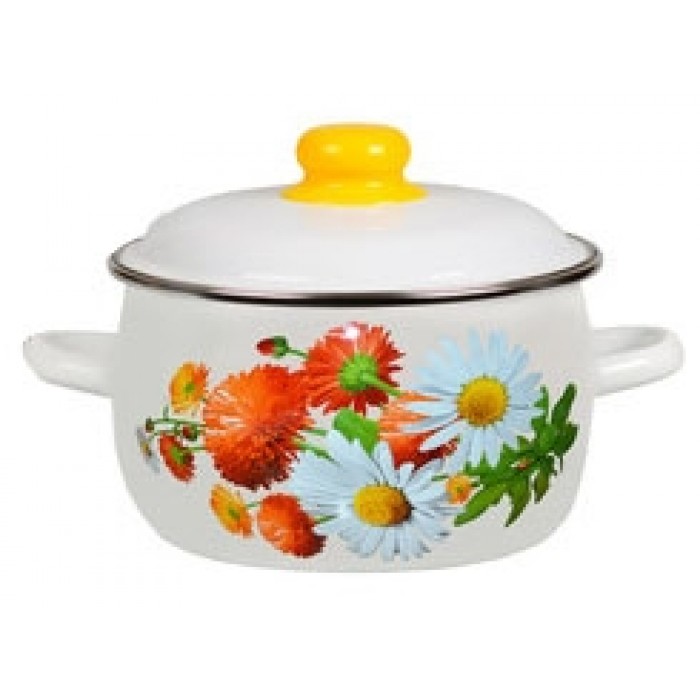 Oala emailata ruseasca 4l, D20cm, RAKI MARGARITKI, cu margine cromata si capac emailat
