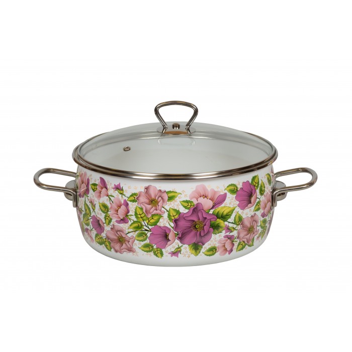 Oala emailata ruseasca 5l, D24cm, RAKI VIOLETA, cu capac sticla