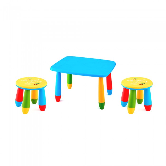 Set mobilier copii RAKI, plastic, masa dreptunghiulara MASHA 72,5x57xh47cm albastra cu 2 scaune GOGOASA galbene
