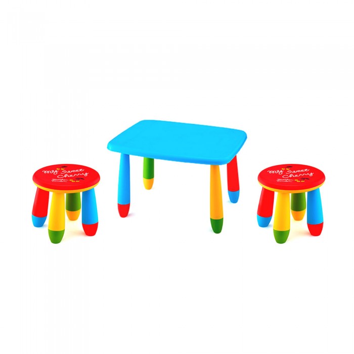 Set mobilier copii RAKI, plastic, masa dreptunghiulara MASHA 72,5x57xh47cm albastra cu 2 scaune GOGOASA rosii