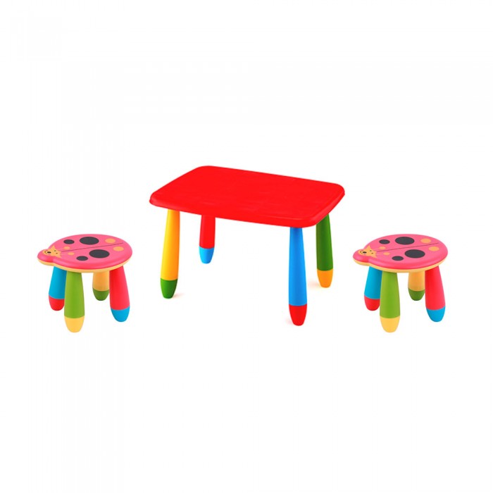 Set mobilier copii RAKI, plastic, masa dreptunghiulara MASHA 72,5x57xh47cm rosie cu 2 scaune Kalinca rosii