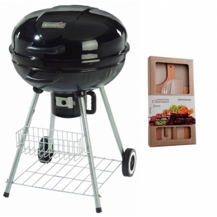 Gratar carbune RAKI cadou set 3 piese furculita gratar,cutit 20 cm si toctor lemn SIMONAGGIO CHURRASCO MN0198649