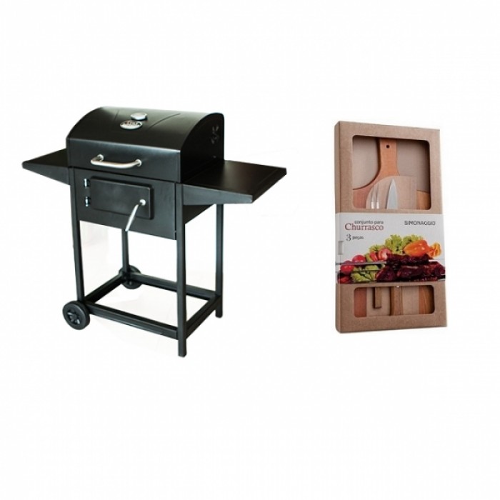 Gratar carbune RAKI cadou set 3 piese furculita gratar,cutit 20 cm si toctor lemn SIMONAGGIO CHURRASCO MN0198650
