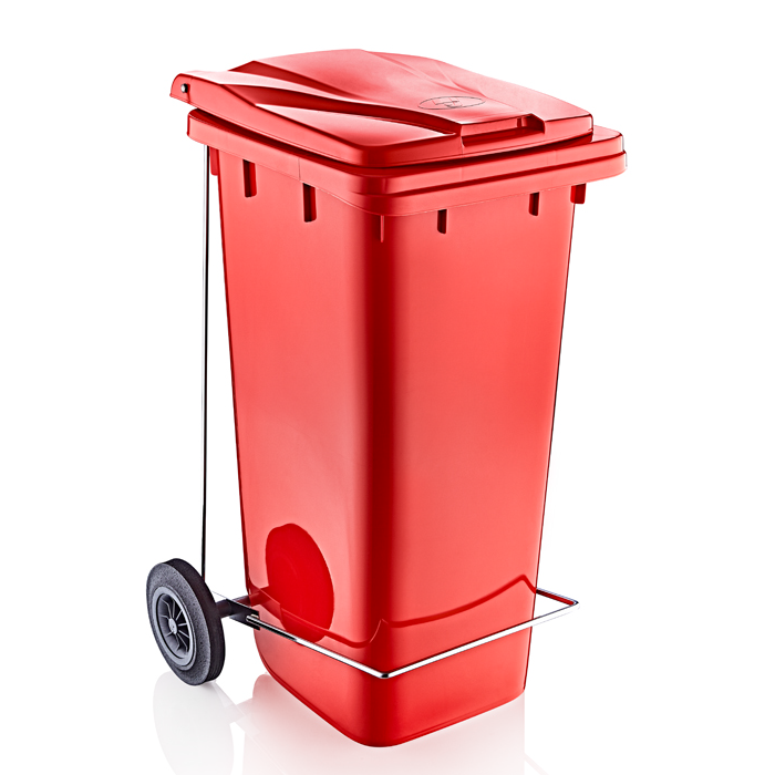 Pubela de gunoi RAKI ICIKALA cu pedala si roti 120lt 60x45,5x95,5cm rosie