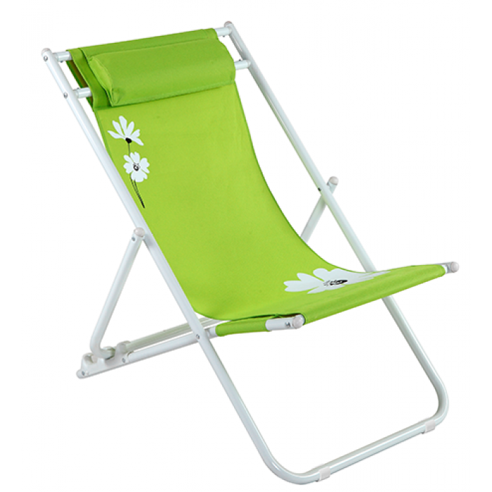 Scaun pliant plaja/camping cu perna RAKI FLOWER 37, reglabil 3 pozitii, panza cu cadru metalic, 56,5x91x96cm, verde