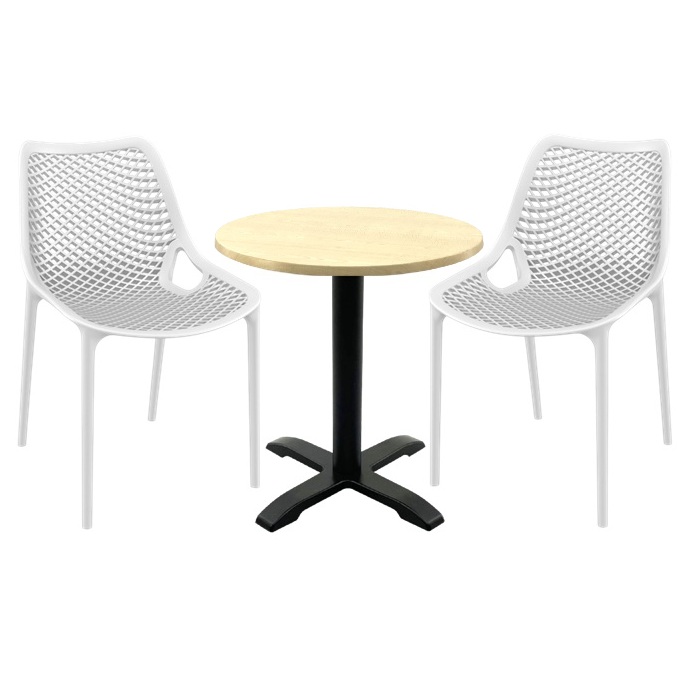 Mobilier pentru cafenea, 2 scaune London Air albe cu masa rotunda 60x74cm Raki MAPLE blat werzalit si picior negru