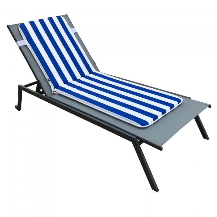Sezlong CULINARO 4 pozitii cu roti deplasare 70x197,5xh34,5cm gri + saltea 170x50cm alb/albastru